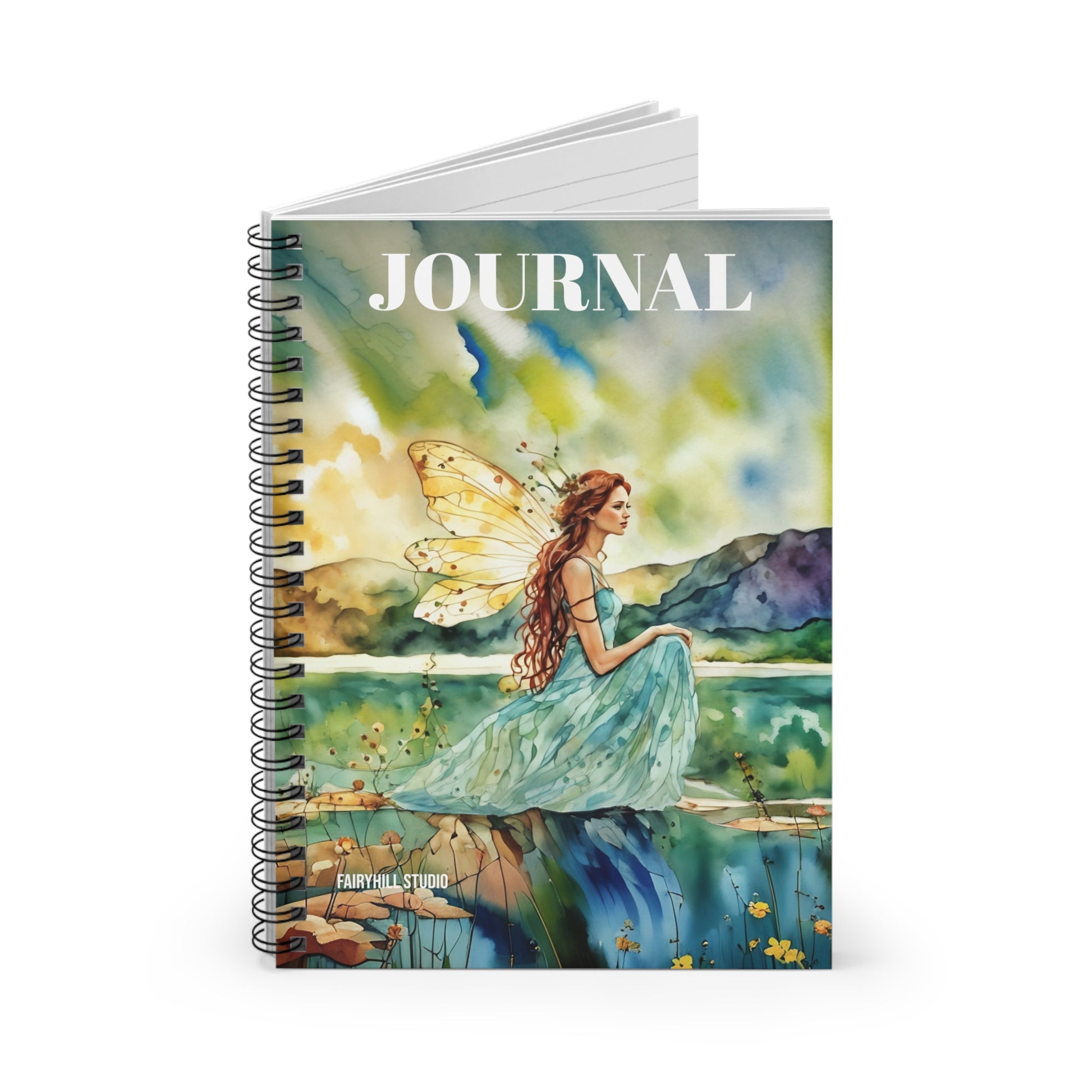 A stunning Spiral Notebook featuring a beautiful Water Fairy sitting on a rock in the middle of a lake, depicted in a watercolor art. This notebook exudes a magical and ethereal vibe, perfect for those who love fantasy and nature-inspired designs. Ideal for writers, artists, students, and anyone who appreciates whimsical and mystical themes. Great for birthdays, back-to-school, or as a thoughtful gift for fairy lovers and dreamers.