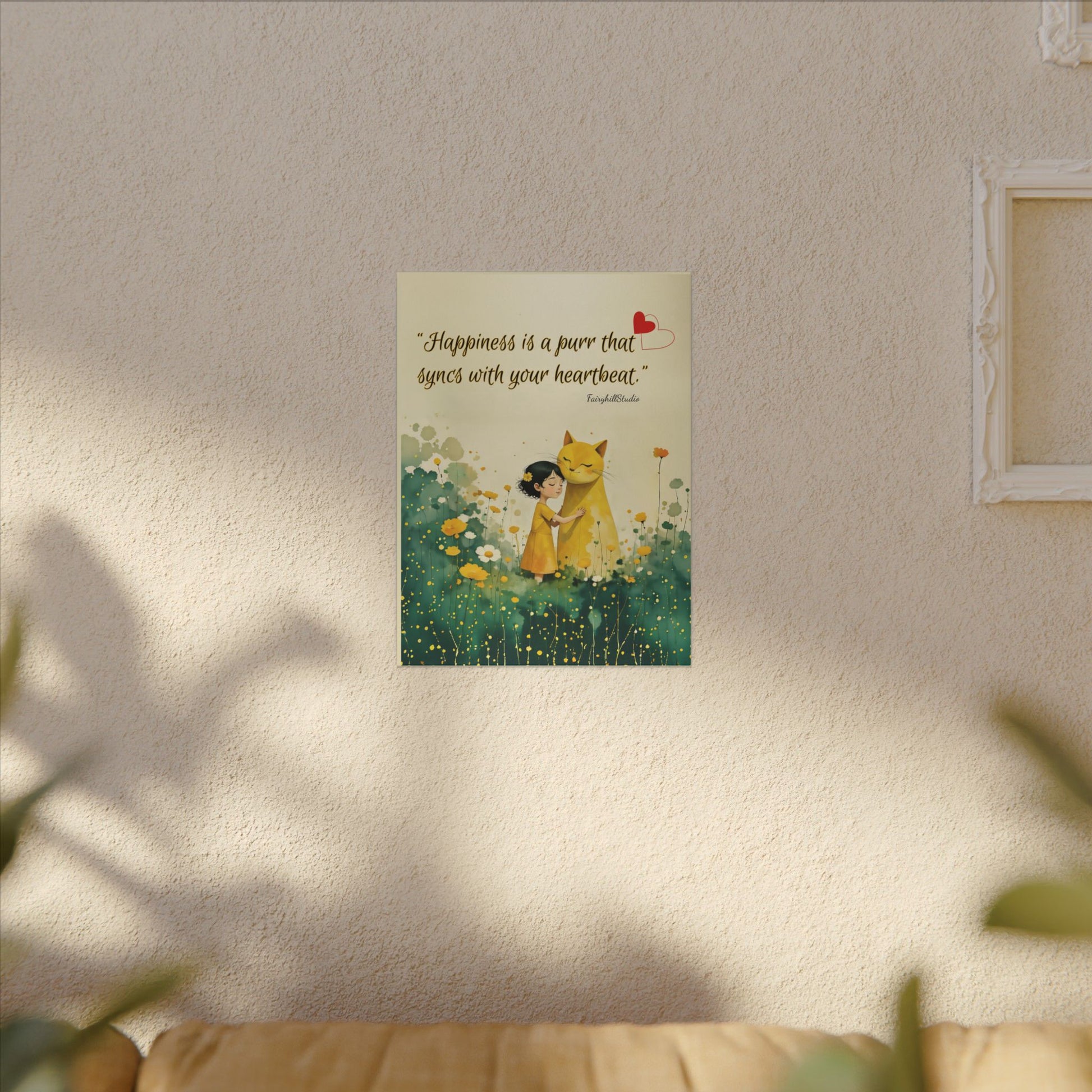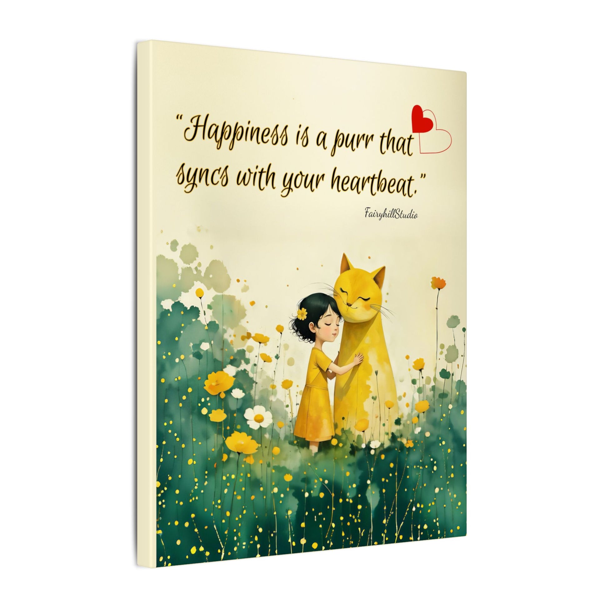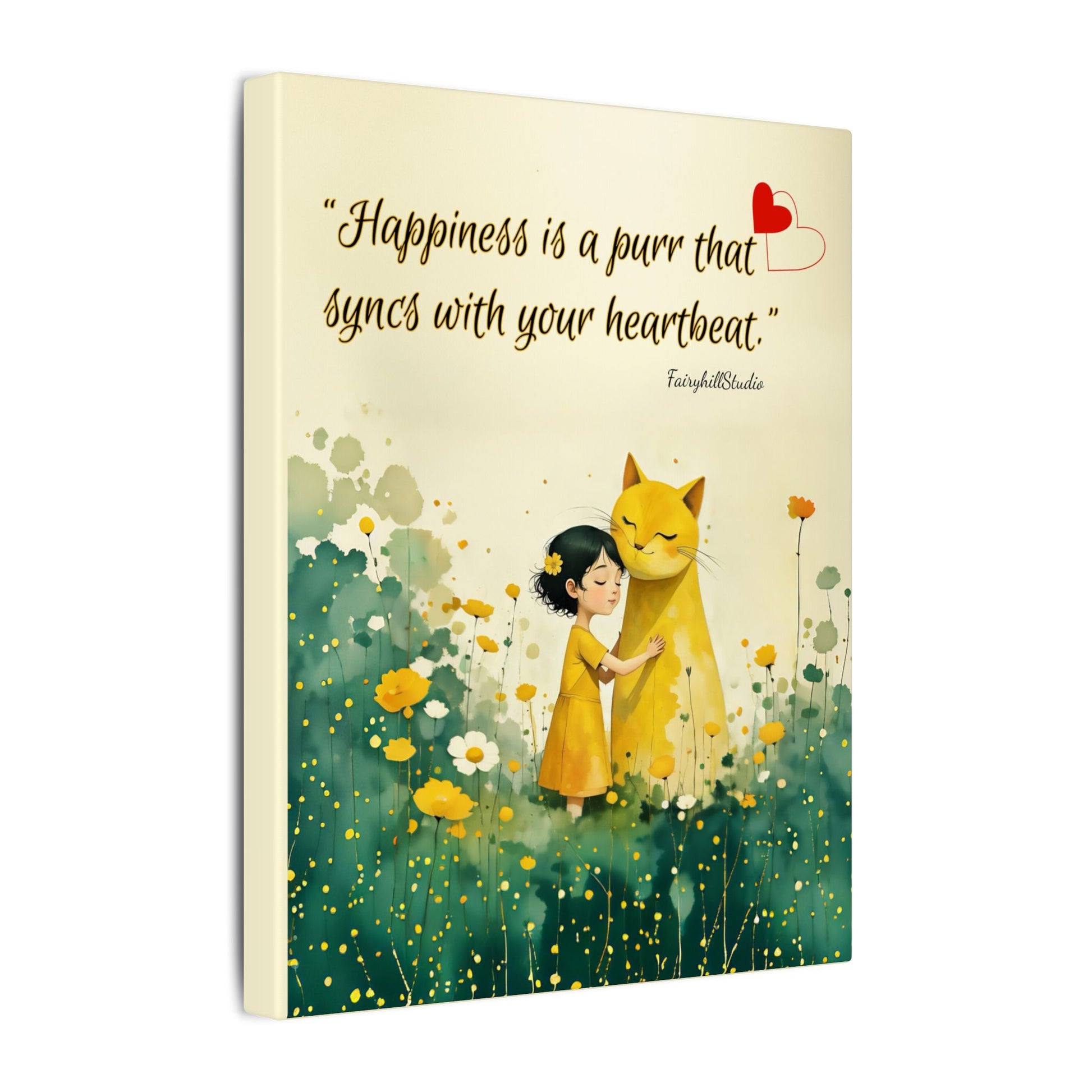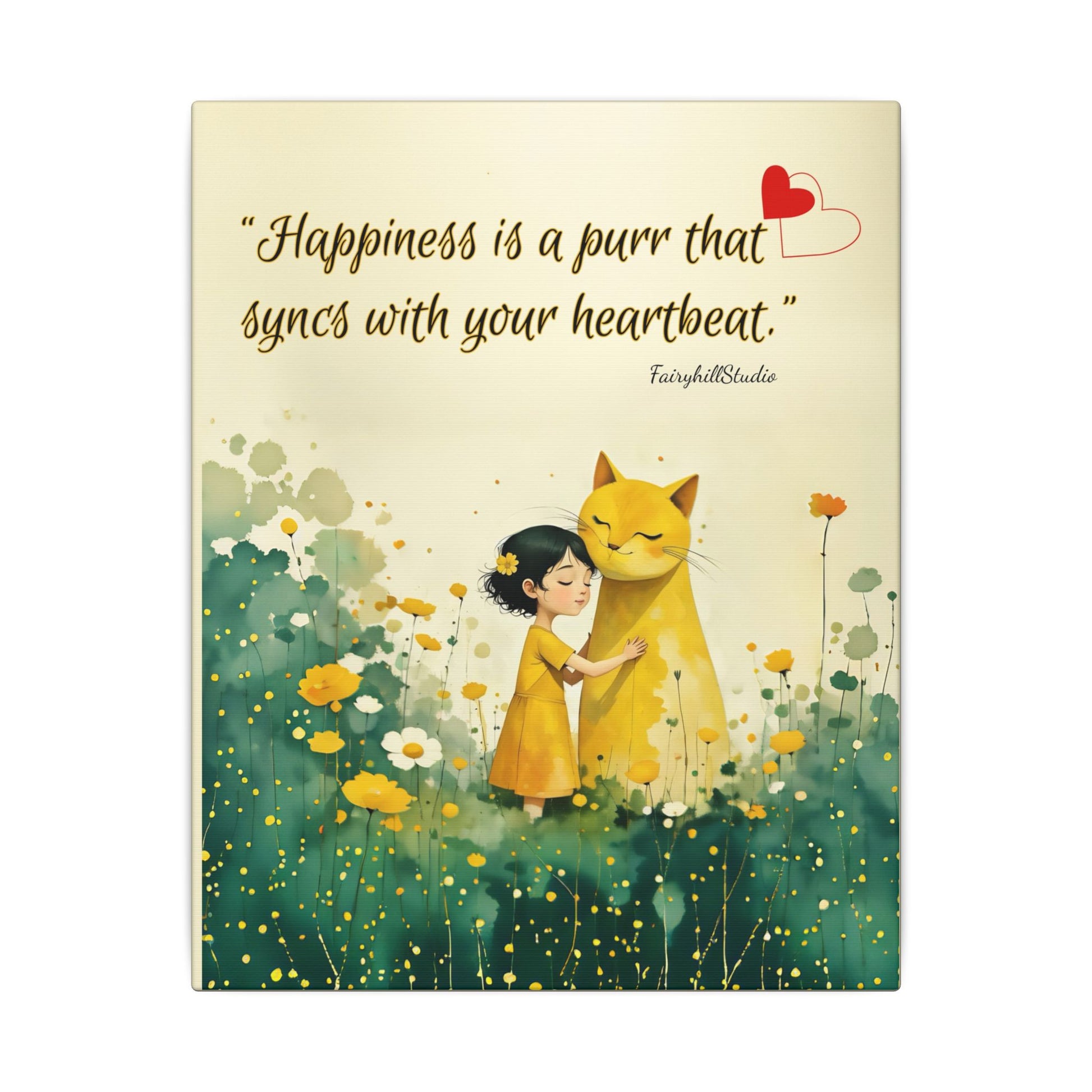 Whimsical Canvas Art Print, Syncs with Your Heartbeat Decor, Cat and Girl Illustration, Home & Kids Room Decor, For Cat Lovers