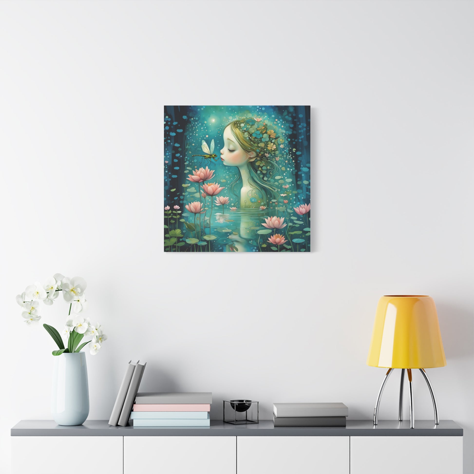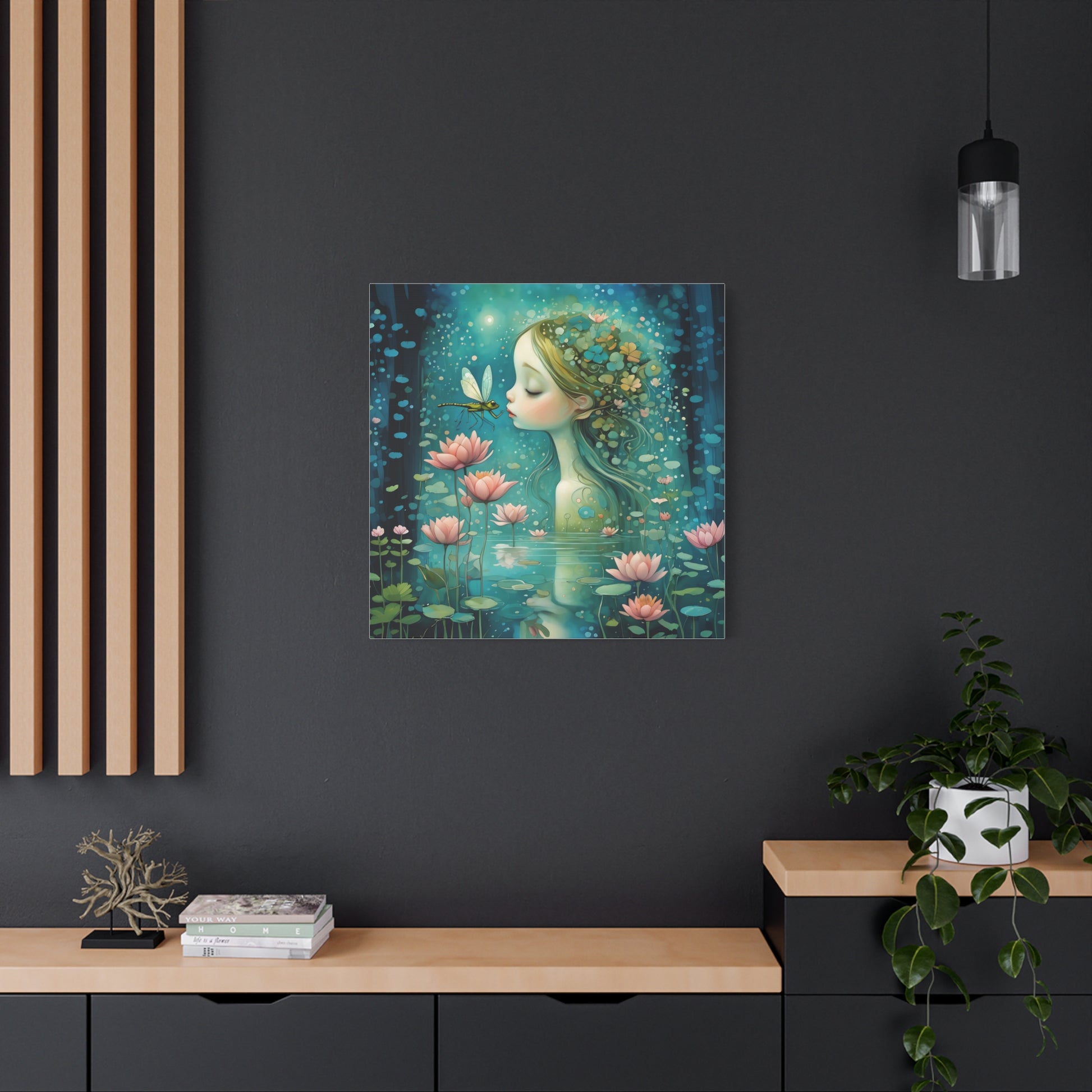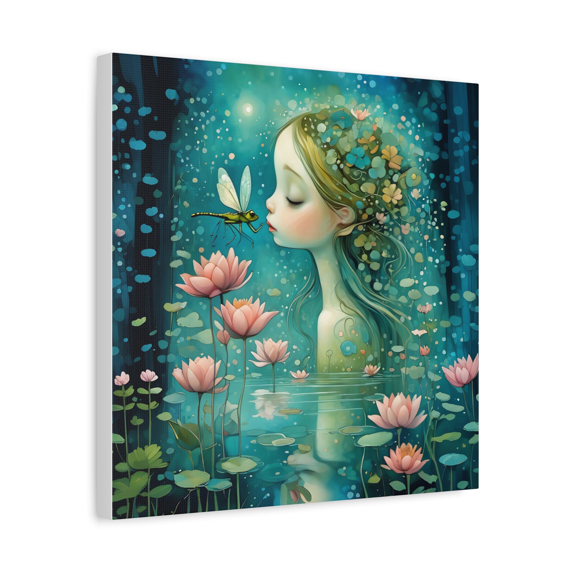 Whimsical Water Fairy with a dragonfly Canvas Art - Enchanting Home Decor for Nature Lovers