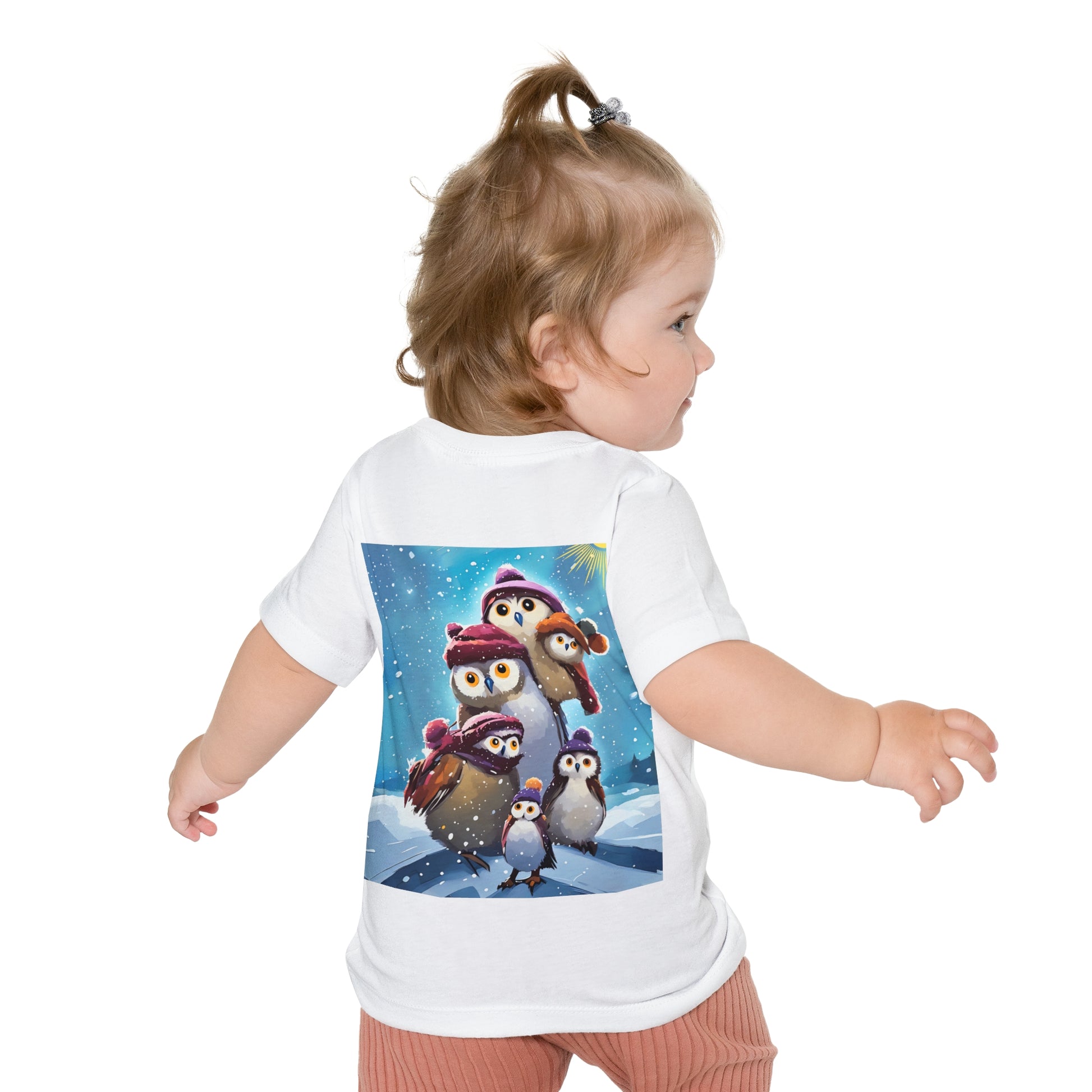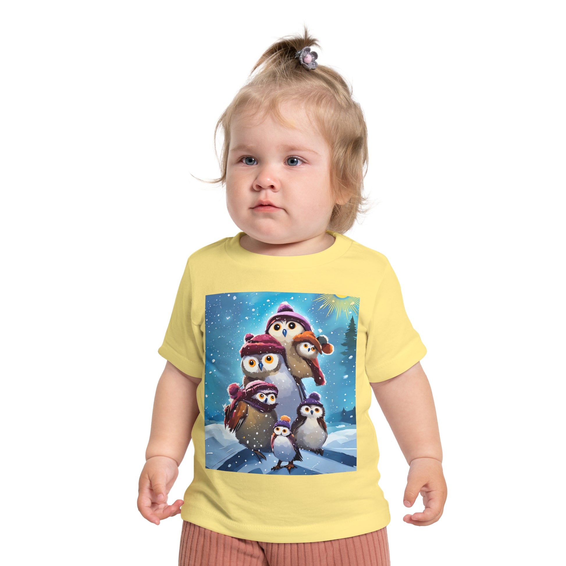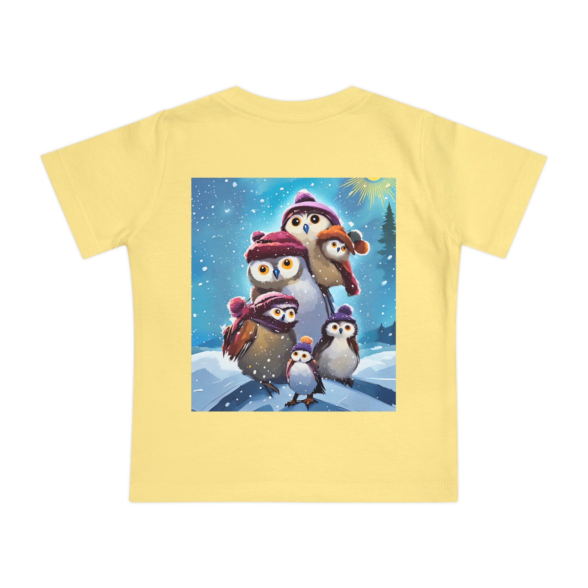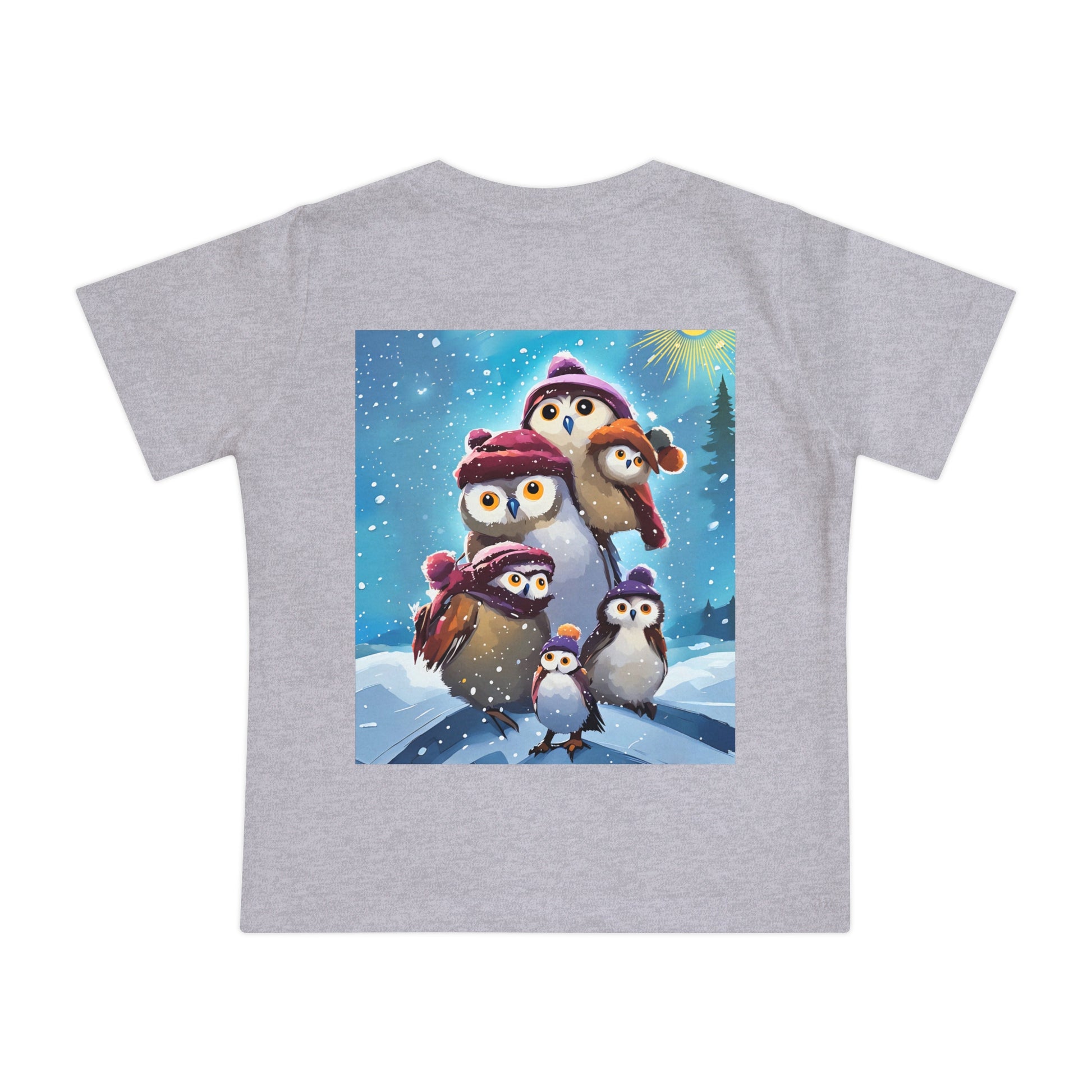 This adorable Winter Owls and penguin family in snow Baby T-Shirt is a cute short sleeve tee for kids, perfect for the chilly season. The whimsical design brings a playful and joyful vibe, making it ideal for little ones to wear during the winter holidays and family gatherings.