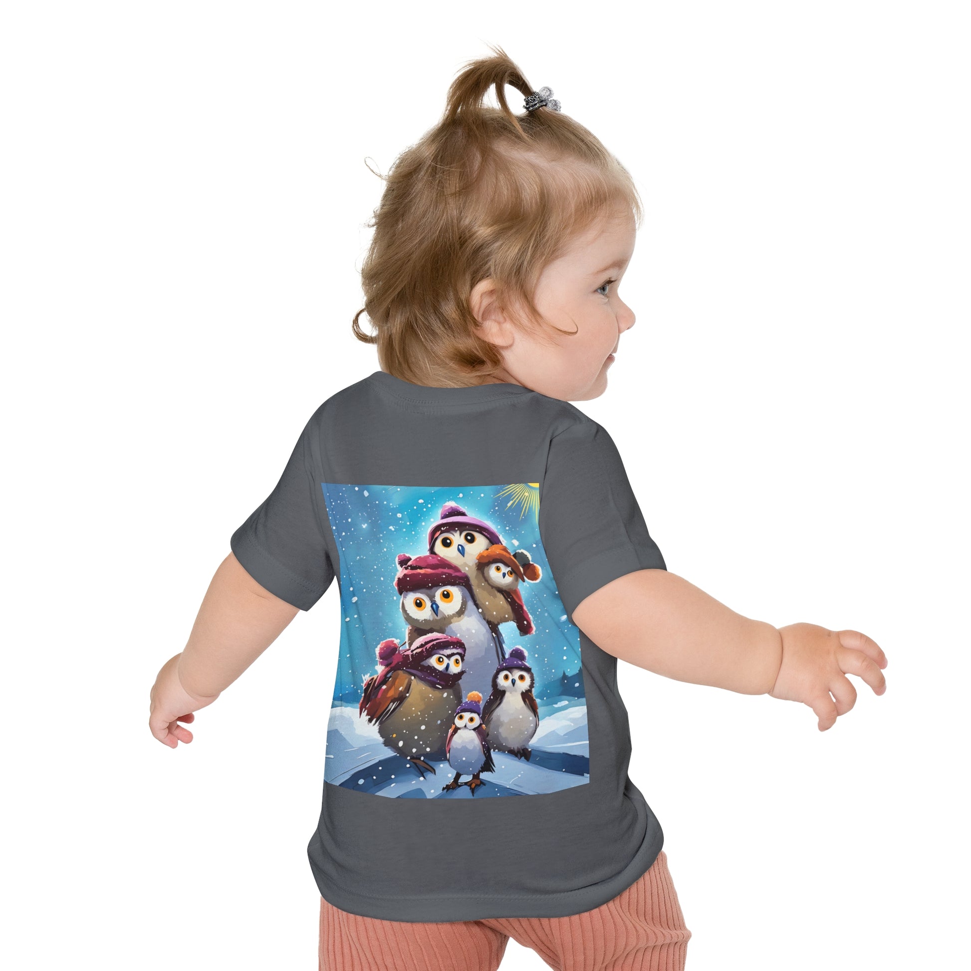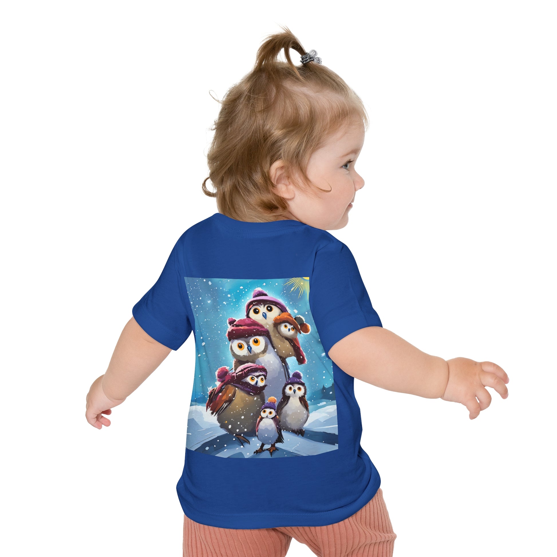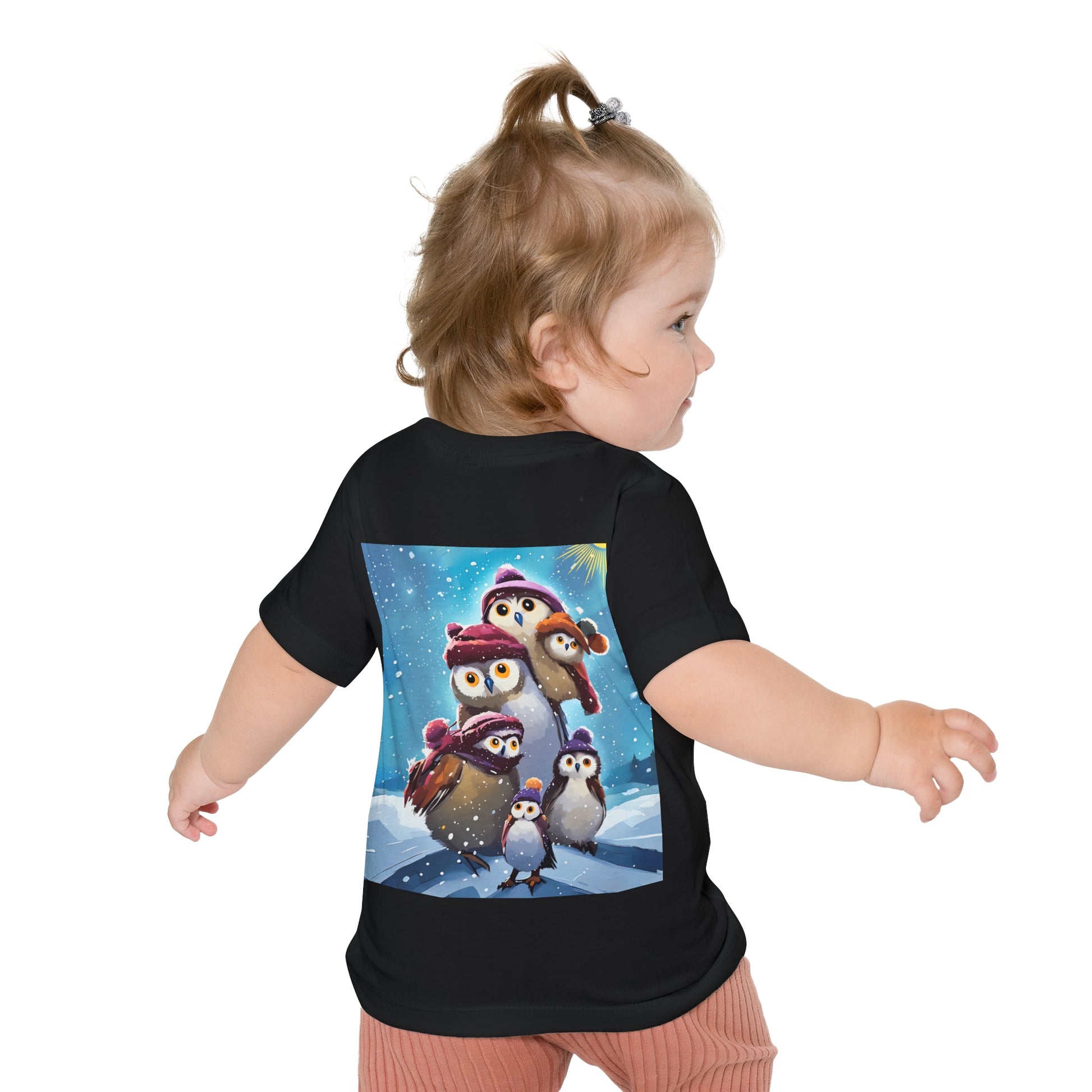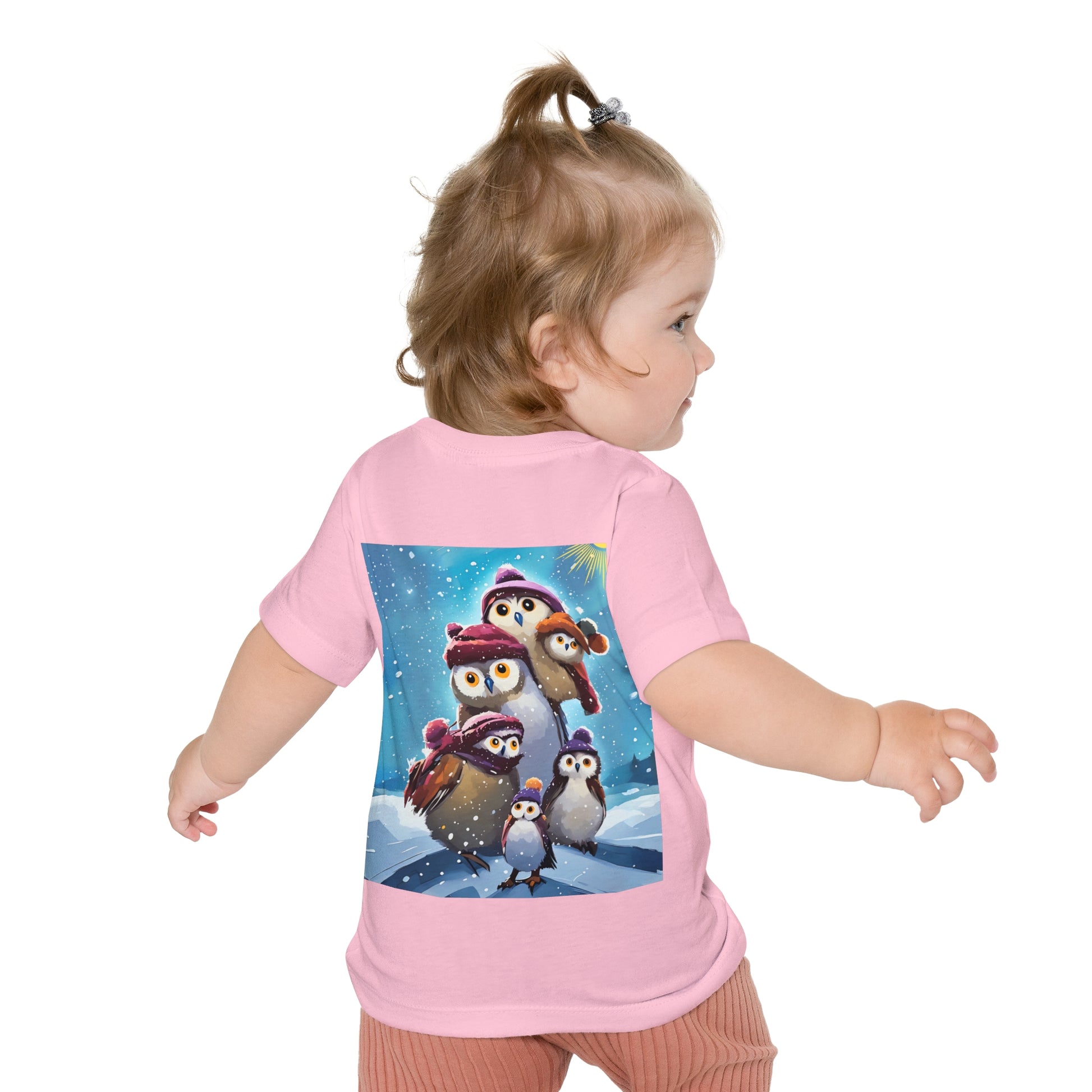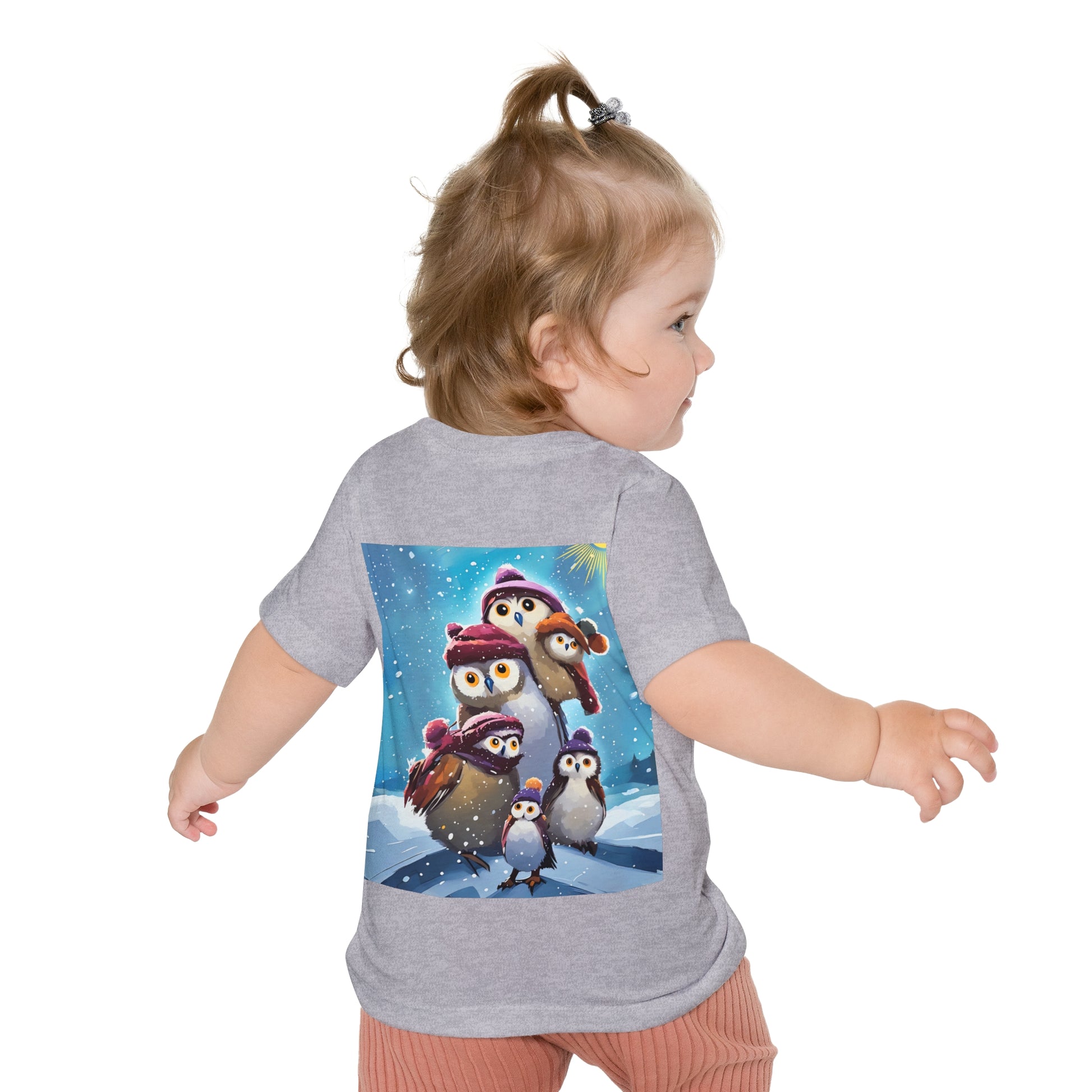 This adorable Winter Owls and penguin family in snow Baby T-Shirt is a cute short sleeve tee for kids, perfect for the chilly season. The whimsical design brings a playful and joyful vibe, making it ideal for little ones to wear during the winter holidays and family gatherings.