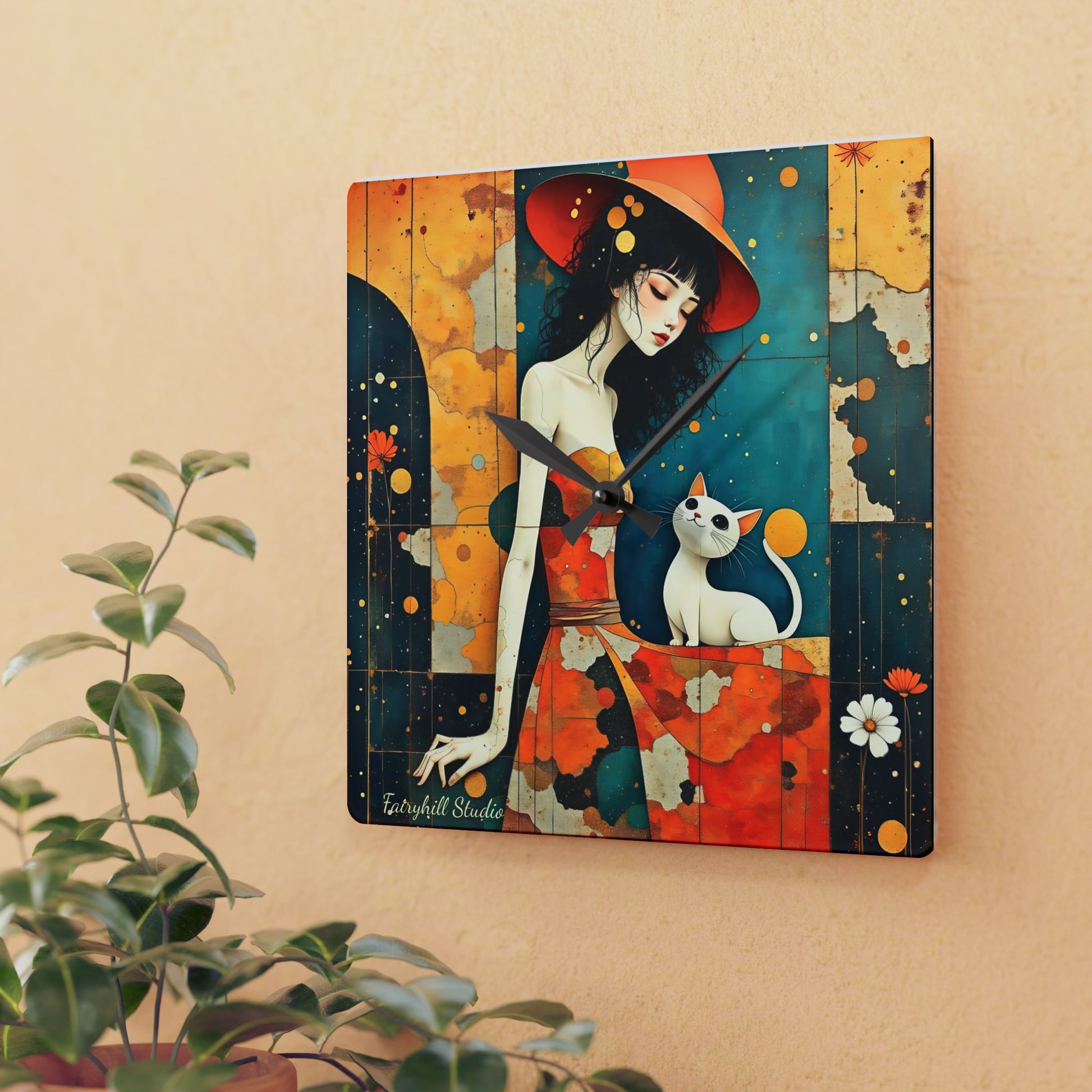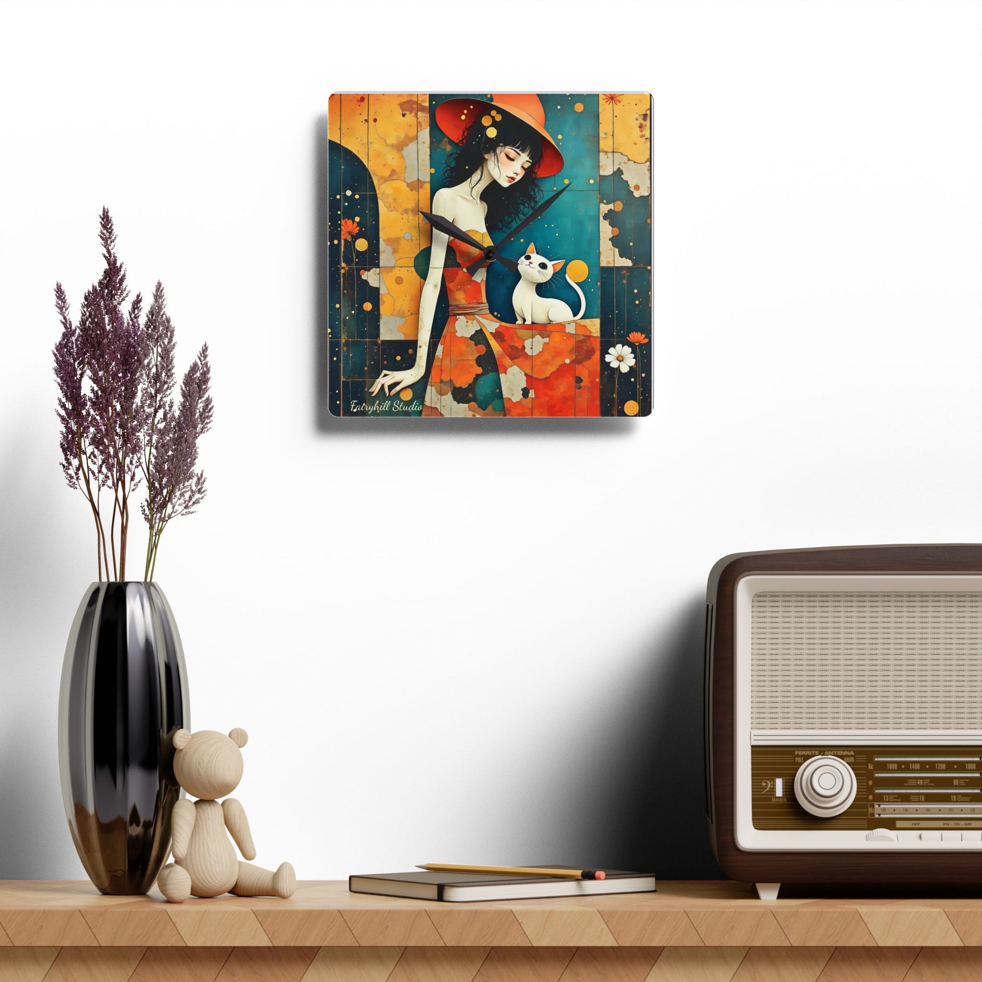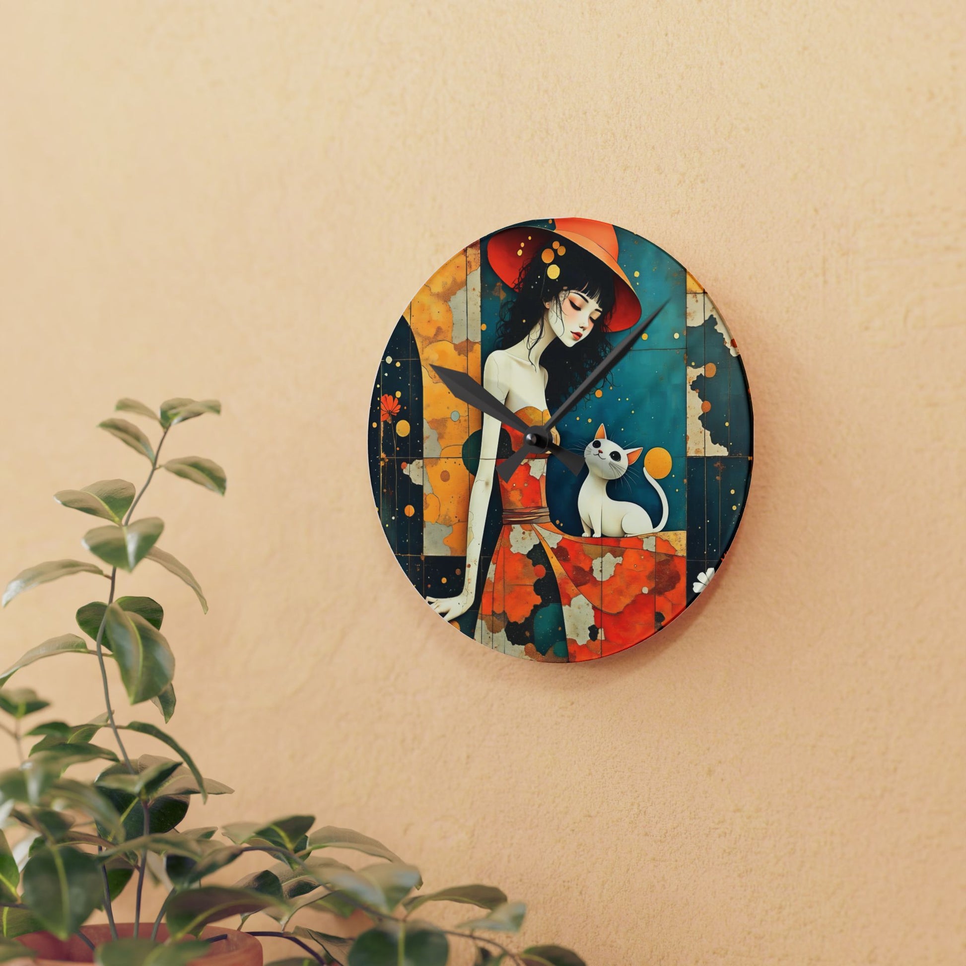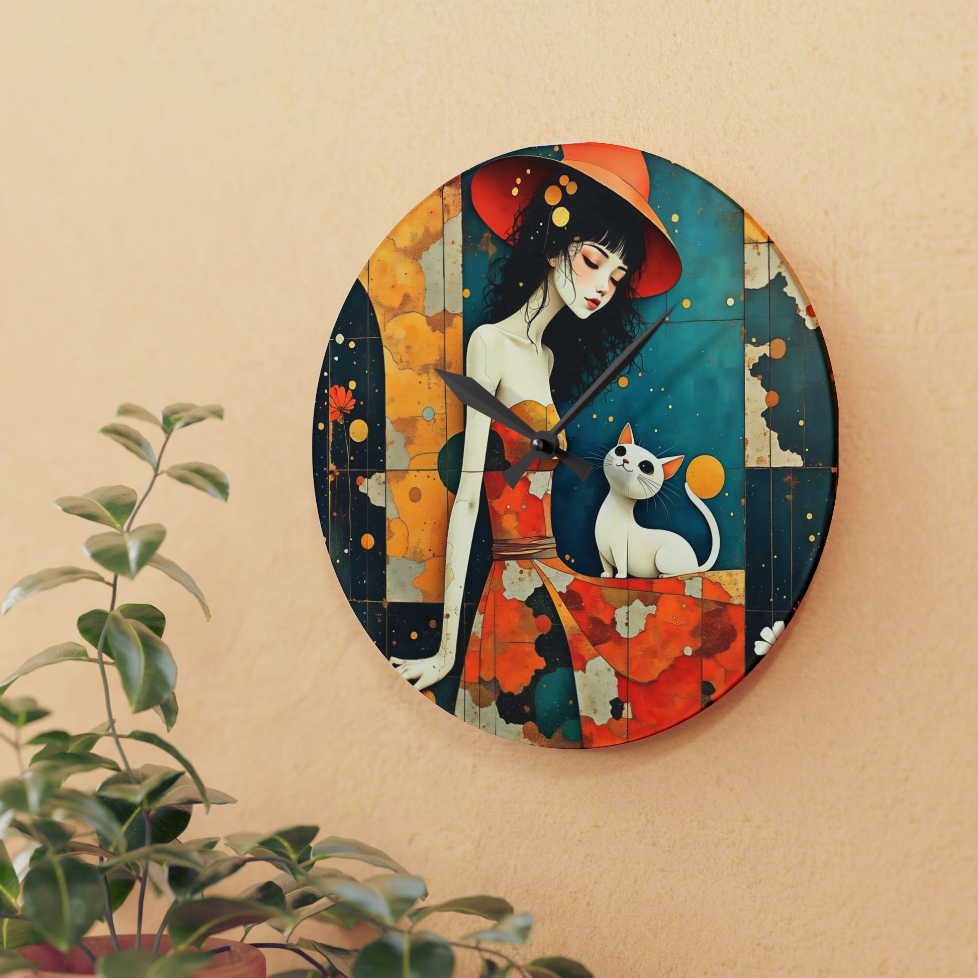 Bring the serene and magical feeling of winter into your home with this Acrylic Wall Clock featuring Witch with white cat Acrylic Wall Clock art by Fairyhill.Studio Perfect for whimsical art lovers owl lovers and holiday enthusiasts, this wall boho clock adds a touch of whimsy and nature to any room.