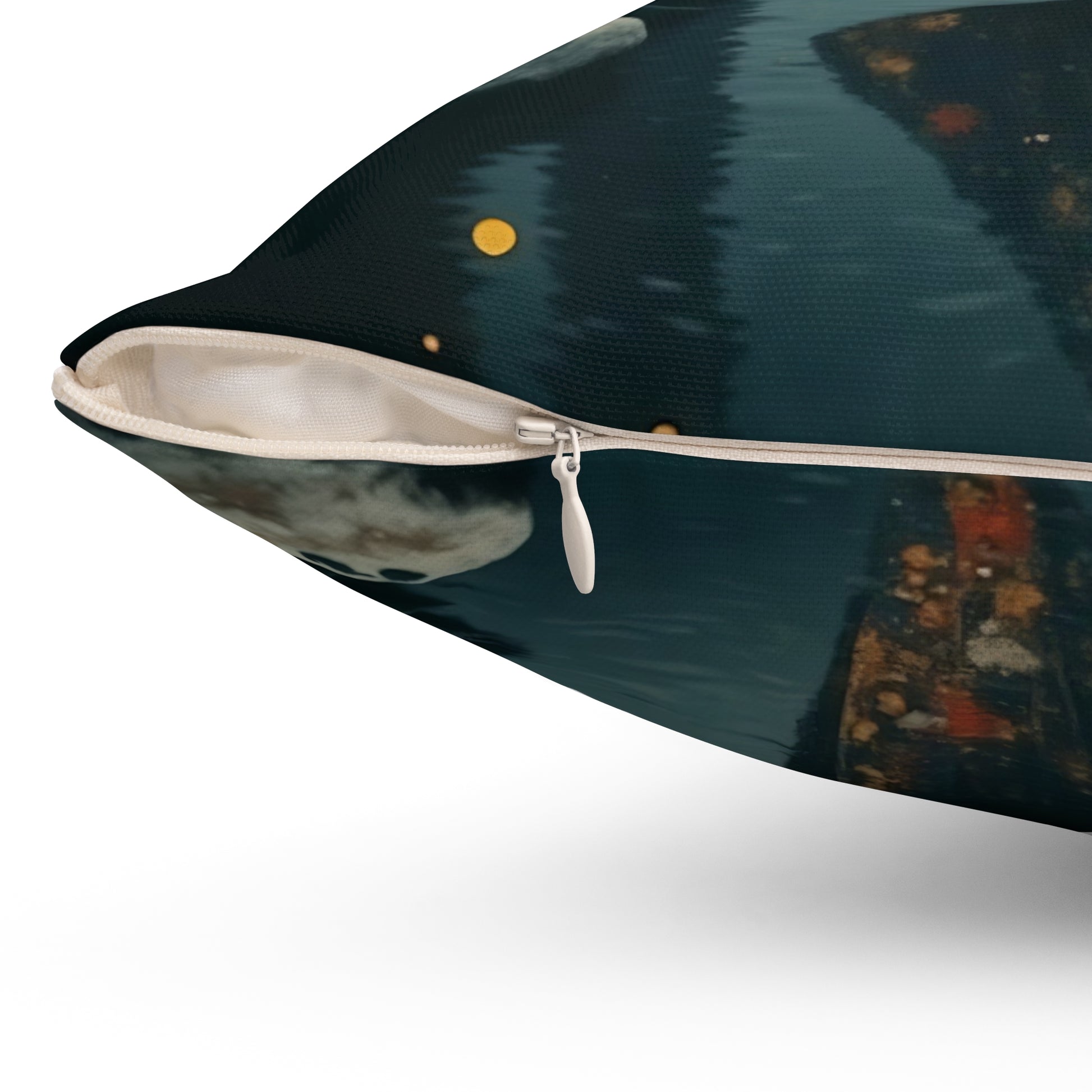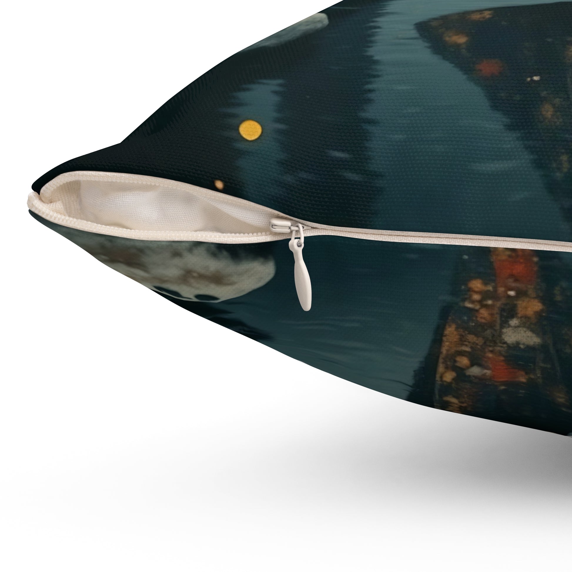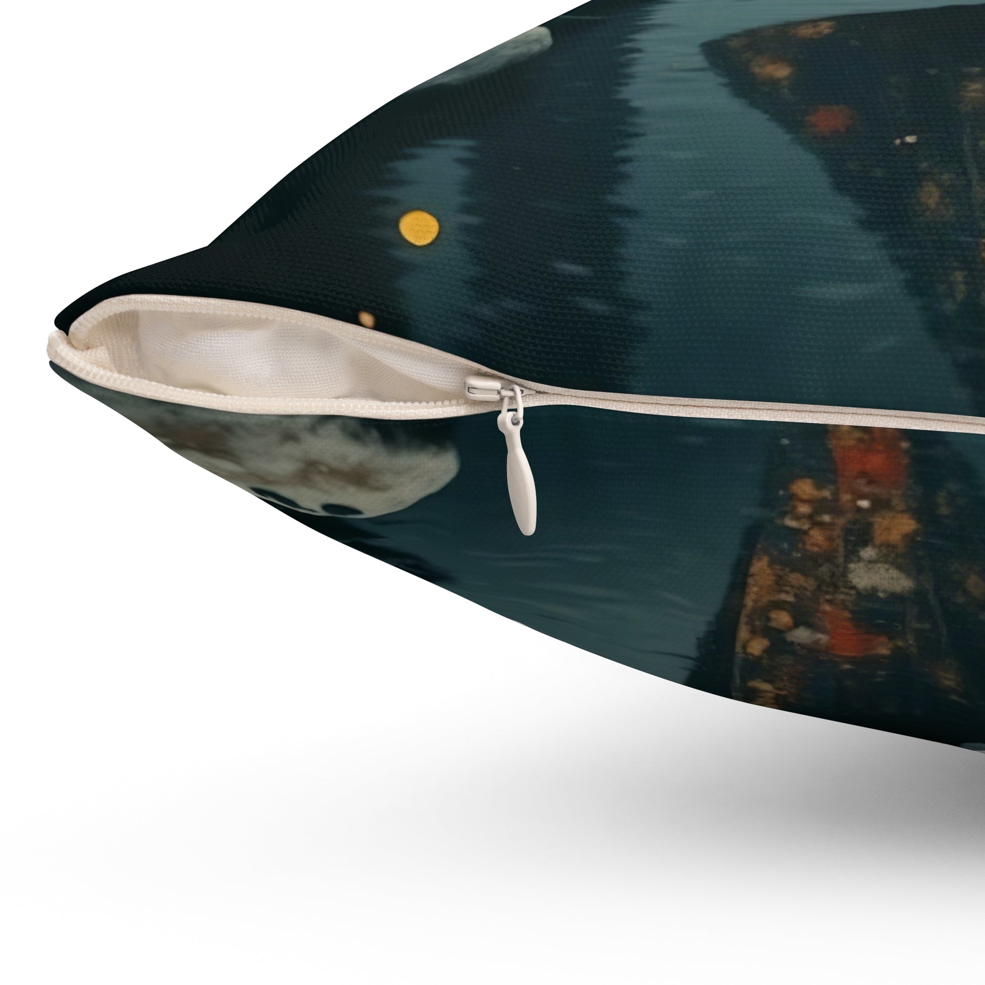 This double-sided printed Yellow umbrella Square Pillow - by Fairyhill StudioSquare  pillow features a Lady with a Gentle Guardian a black cat  Square Pillow by fairyhill studio, giving off a whimsical and charming vibe. Perfect for  book art lovers lovers and those who enjoy a touch of whimsy in their decor. Ideal for spring and summer home decor, garden parties, and bee-themed celebrations.