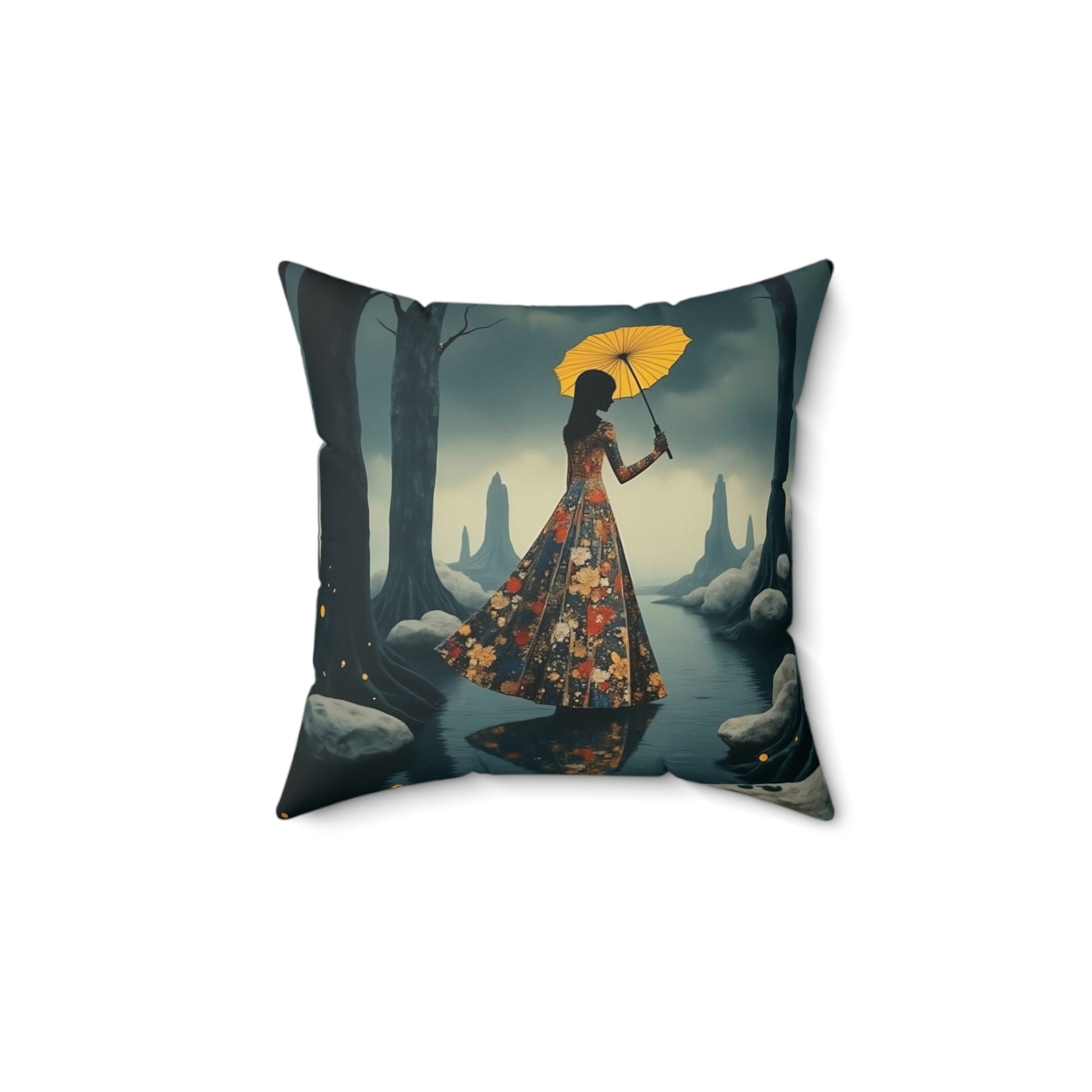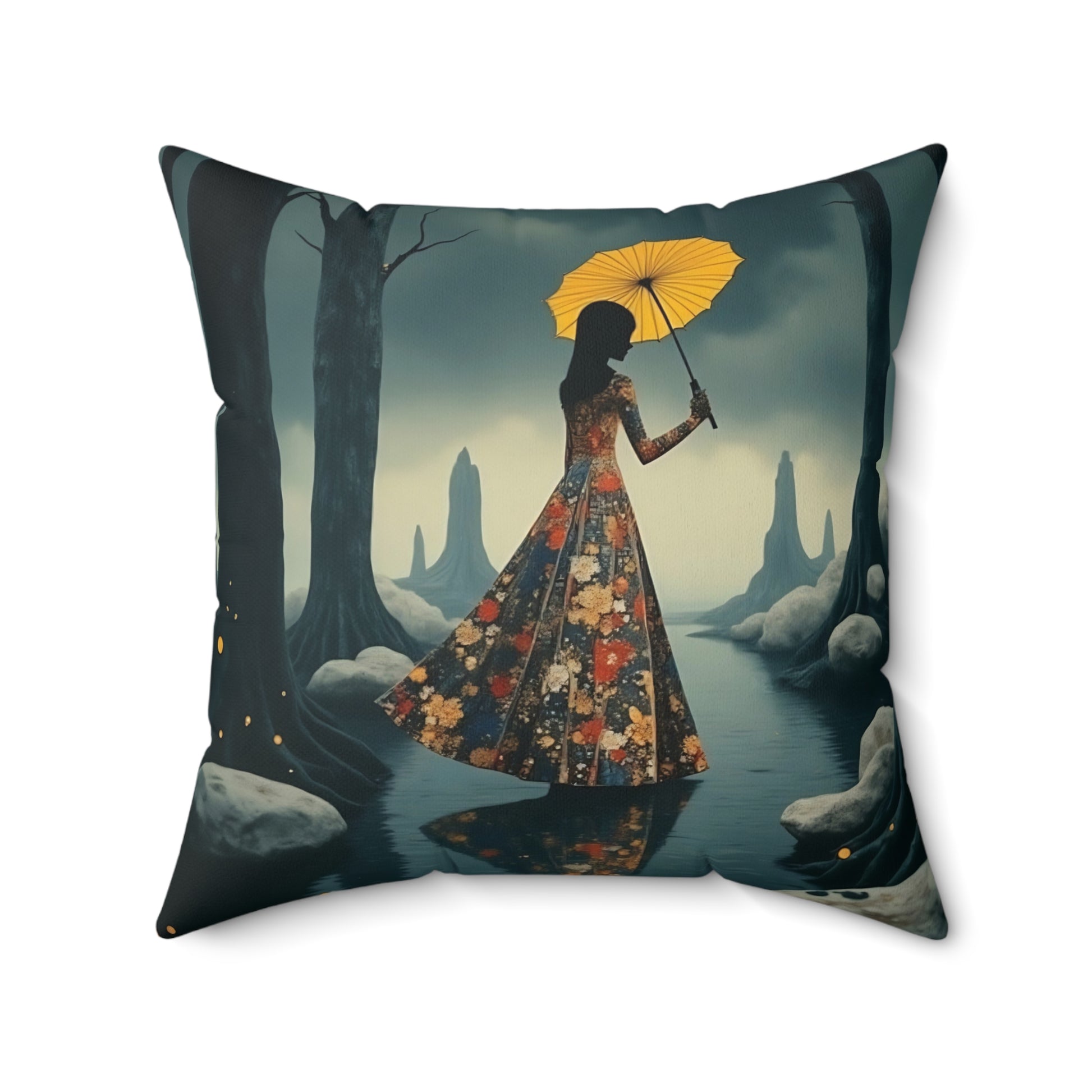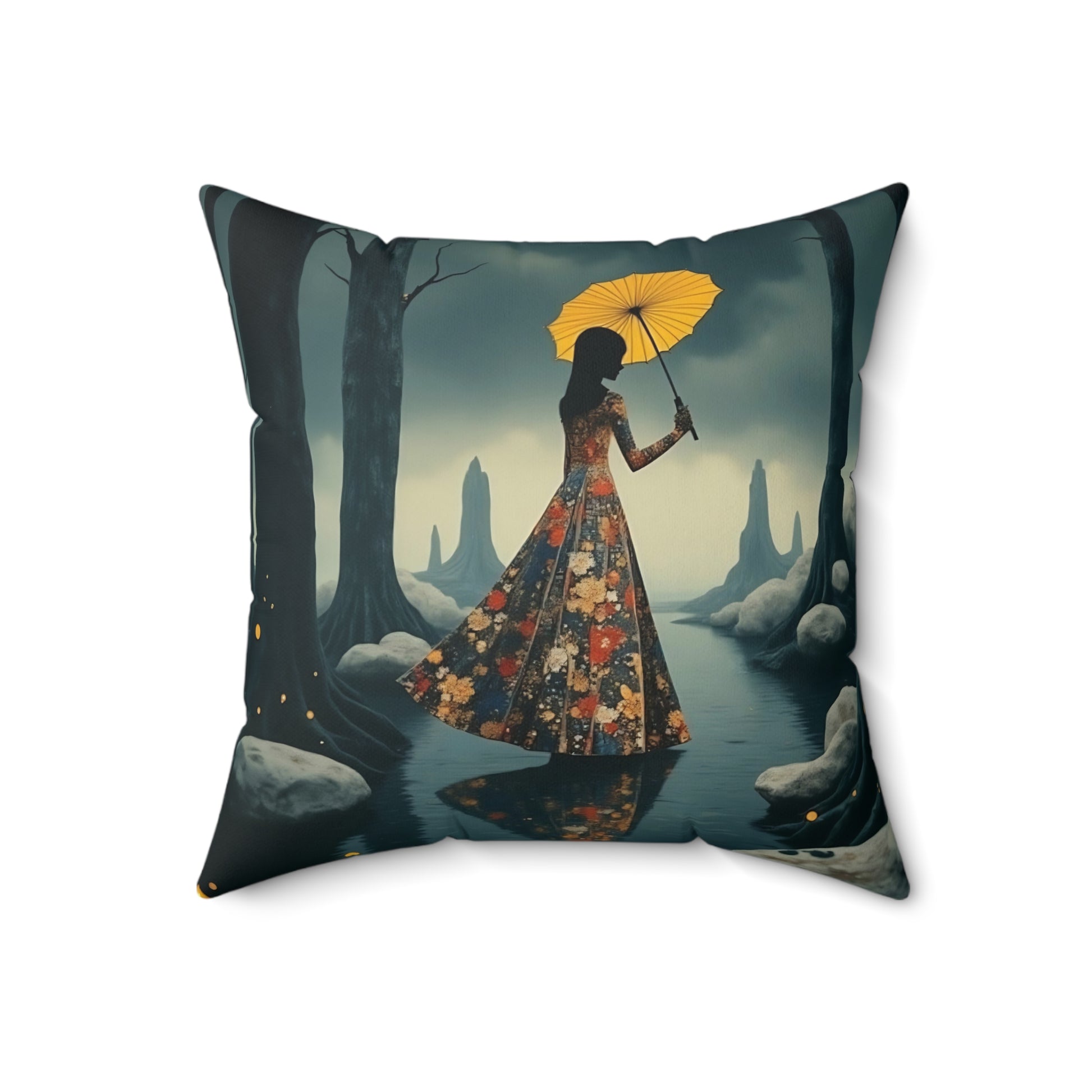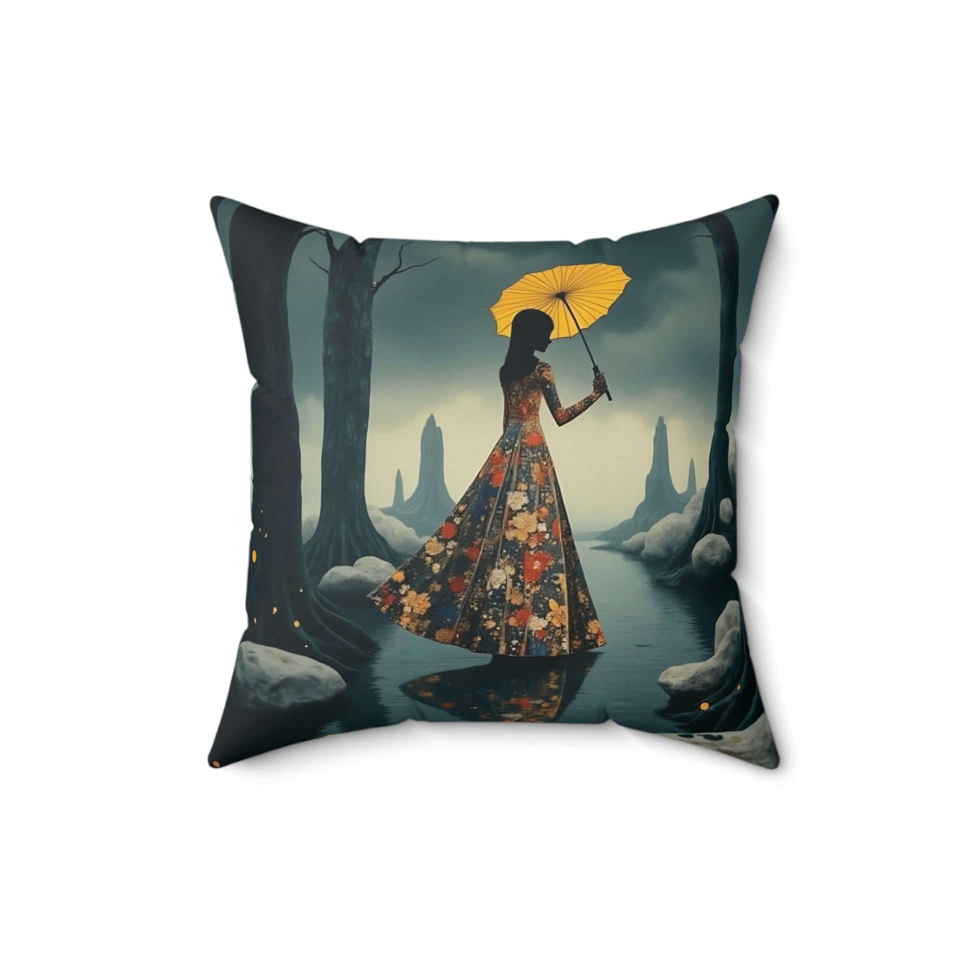 Yellow umbrella Square Pillow - by Fairyhill Studio
